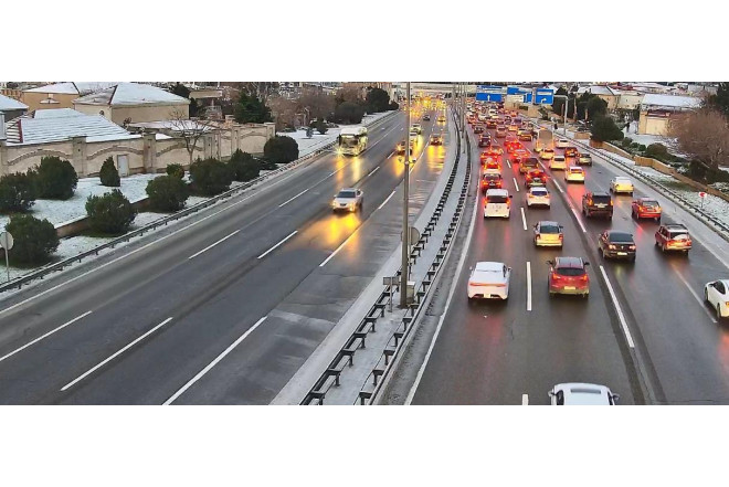 Hazırda Aeroport şosesi - mərkəz istiqamətində yolun buz bağlaması səbəbindən nəqliyyatın hərəkəti çətinləşib.