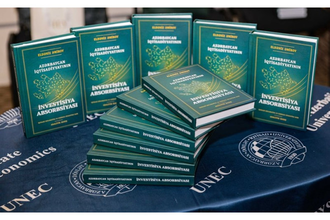 Bu gün tanınmış iqtisadçı-ekspert Eldəniz Əmirovun “Azərbaycan iqtisadiyyatının investisiya absorbsiyası” adlı kitabının Azərbaycan Dövlət İqtisad Universitetində təqdimat mərasimi keçirilmişdir.
