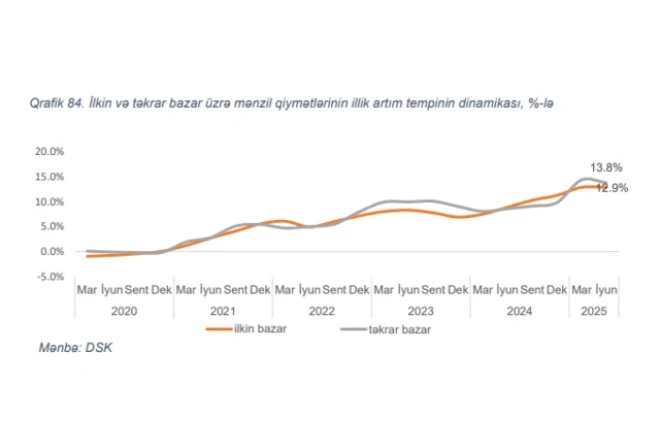 Son 5 il ərzində (2020-ci ilin iyun ayı ilə müqayisədə) Azərbaycanda ilkin və təkrar bazarda mənzil qiymətləri 46% artıb.