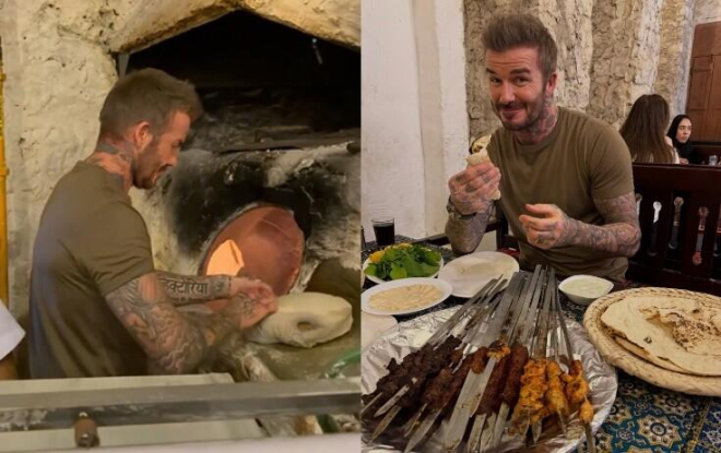 Görüntülərdə Bekhemin Dohada təndirə çörək yaxdığı, kabab yediyi əks olunub. /Axşam.az