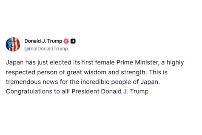O, bildirib ki, Yaponiya tarixində ilk dəfə olaraq qadın baş nazir seçilib.