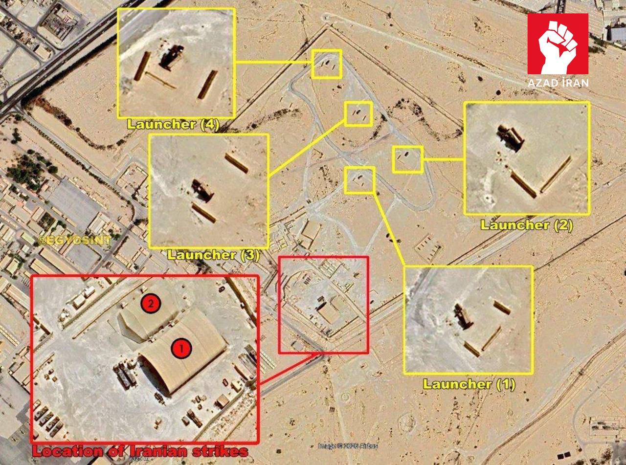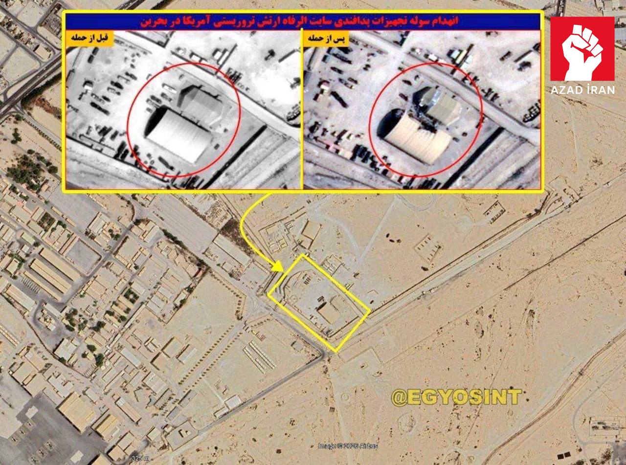 Peyk görüntüləri göstərir ki, İran Bəhreyndə ABŞ-yə məxsus "Patriot" hava hücumundan müdafiə sistemi mövqeyinə raket zərbəsi endirib.