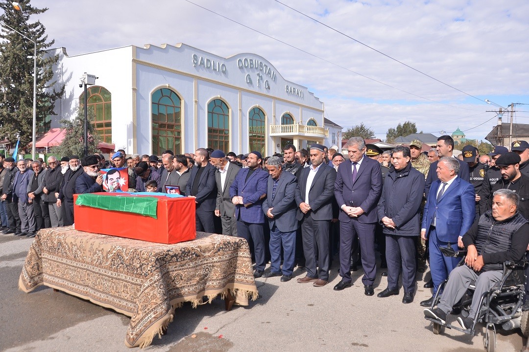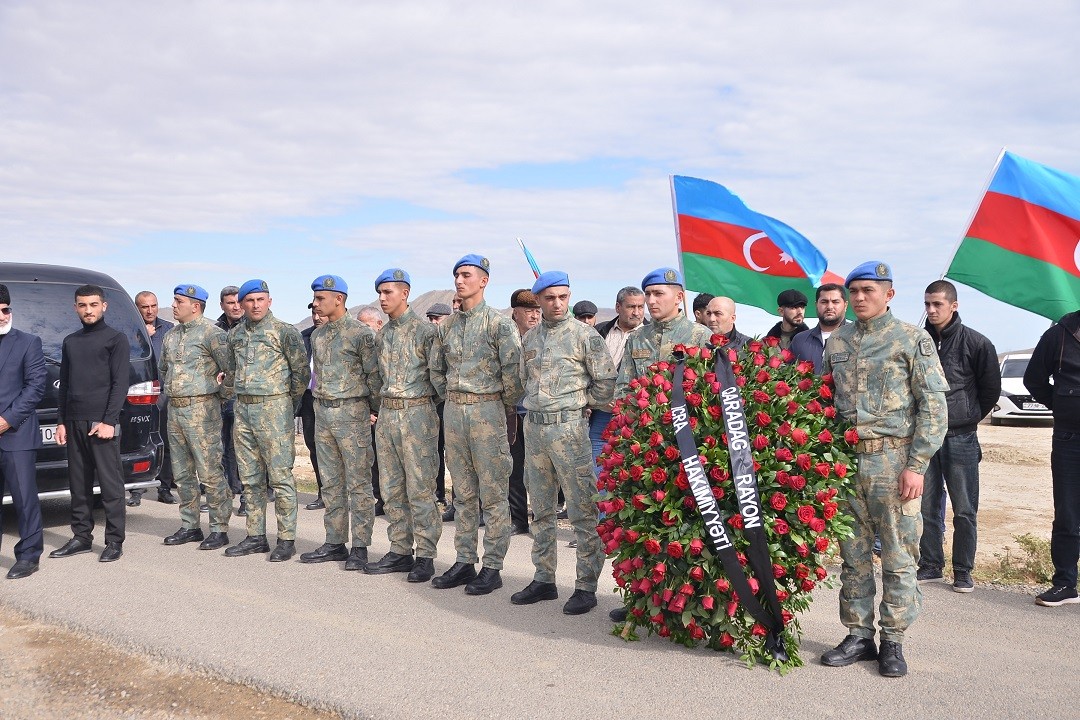 Şəhidin məzarı üzərinə əklil qoyulub və gül dəstələri düzülüb, vətənimizin bütövlüyü uğrunda canından keçən şəhidlərimizin əziz xatirəsi bir dəqiqəlik sükutla yad edilib, yaylım atəşi açılıb.