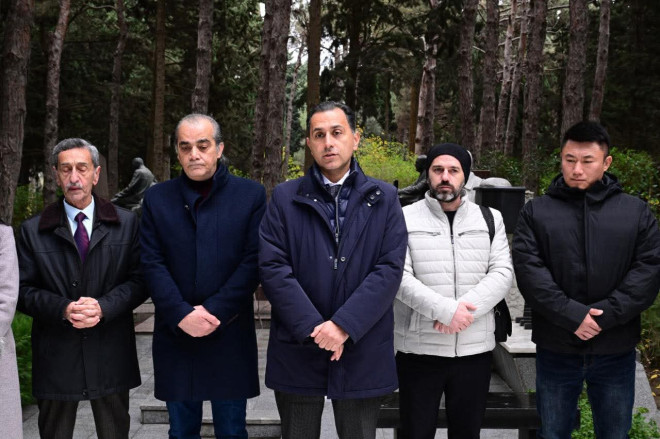 Rəşid Behbudovun 110 illiyi münasibətilə Fəxri xiyabanda məzarı ziyarət olunub.
