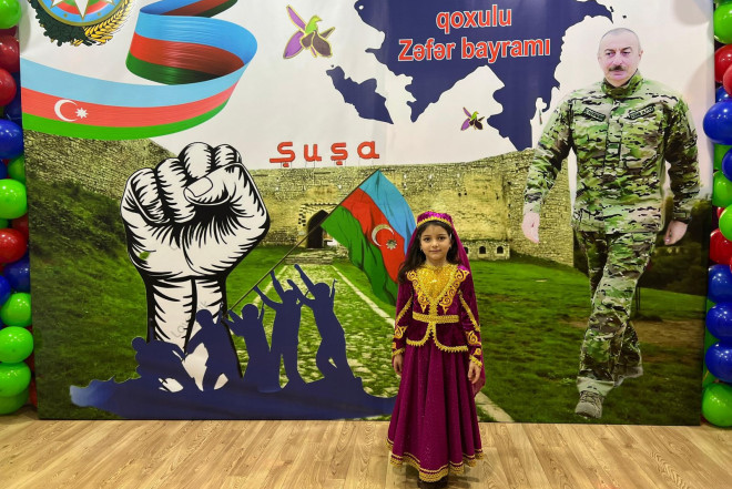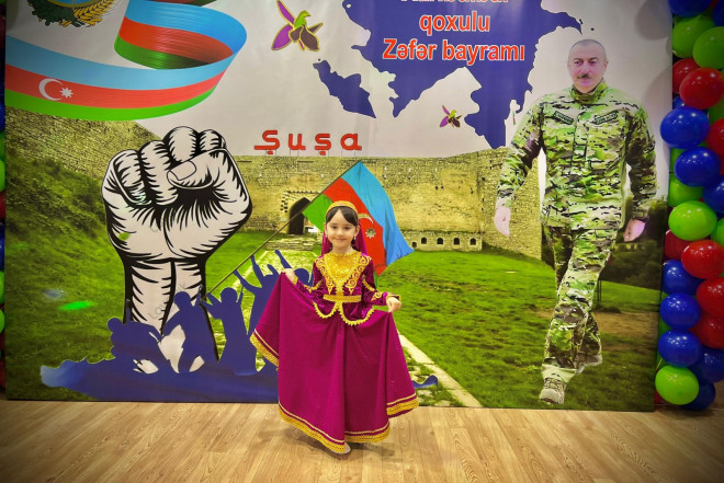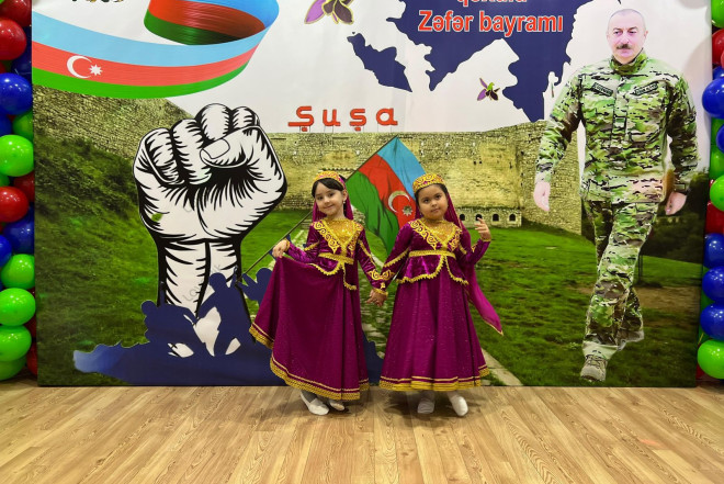 News365.az xəbər verir ki, bayram proqramında uşaqlar hərbi geyimdə çıxış edərək vətənpərvərlik mövzusunda səhnəciklər nümayiş etdirib, mahnılar səsləndirib və rəqs ediblər.