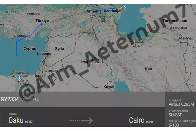 Misirə məxsus "CASA C295" tipli hərbi-nəqliyyat təyyarəsi Azərbaycana uçuş zamanı Ermənistanın hava məkanından istifadə edib.