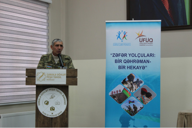 Yanvarın 17-də Azərbaycan Respublikasının Gənclər Fondunun maliyyə dəstəyi ilə “Üfüq” Gənclərin İnkişafı Naminə İctimai Birliyi tərəfindən “Zəfər Yolçuları: Bir Qəhrəman – Bir Hekayə” layihəsi çərçivəsində Vətən müharibəsinə həsr olunmuş maarifləndirici tədbir keçirilib. Tədbir Qəbələ Dövlət Peşə Təhsil Mərkəzində təşkil olunub.