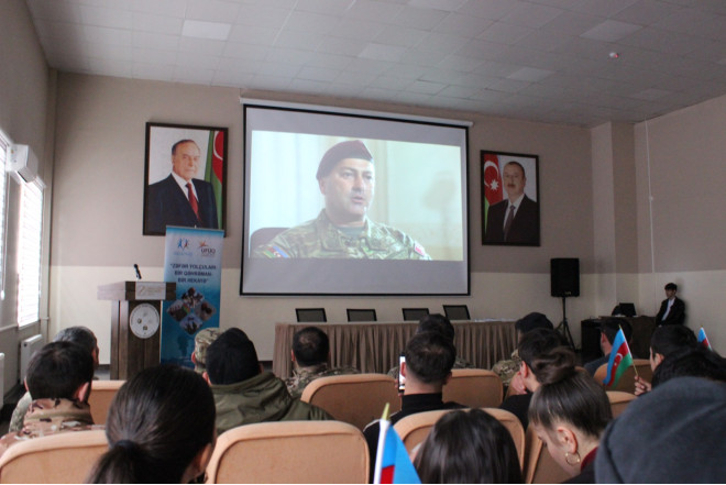 Tədbir çərçivəsində Vətən müharibəsi qaziləri və şəhid ailələrinin nümayəndələri çıxış edərək keçdikləri döyüş yolu, qarşılaşdıqları çətinliklər və Vətən uğrunda göstərilən qəhrəmanlıq nümunələri barədə danışıblar. Müharibə iştirakçısı Orxan Babazadə gənclərlə öz həyat hekayəsini bölüşərək onları daim Vətənə sədaqətli olmağa çağırıb.