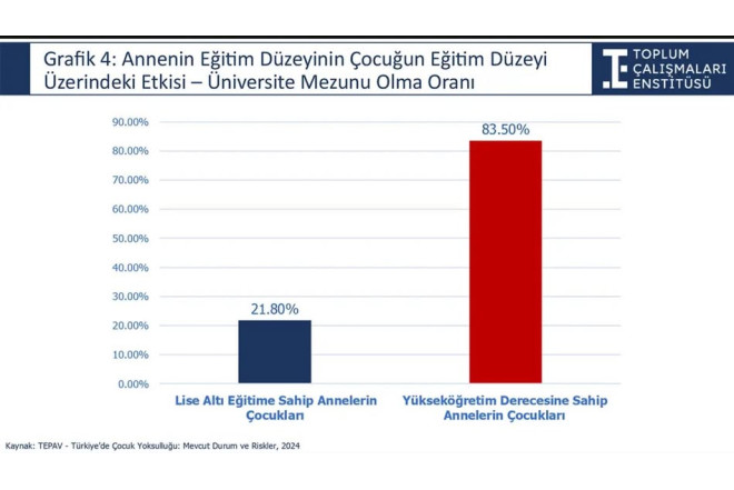 Ancaq paylaşdığım bu qrafika bizlər üçün də effektiv göstərici ola bilər.Belə ki, aşağıdakı qrafikdə ananın təhsil səviyyəsinin uşağın təhsili üzərində təsiredici əhəmiyyətə malik olduğu göstərilir. Orta təhsilli anaların övladlarının ali təhsilə qoşulmaq nisbəti 21.8% təşkil etdiyi halda, ali təhsilli anaların övladlarının ali təhsilə qoşulmaq nisbəti 83.5%-ə bərabərdir. Aradakı fərq kifayət qədər böyükdür. Bu, eyni zamanda təhsildə bərabərsizliyin nəsillərarası ötürüldüyünü nümayiş etdirir.