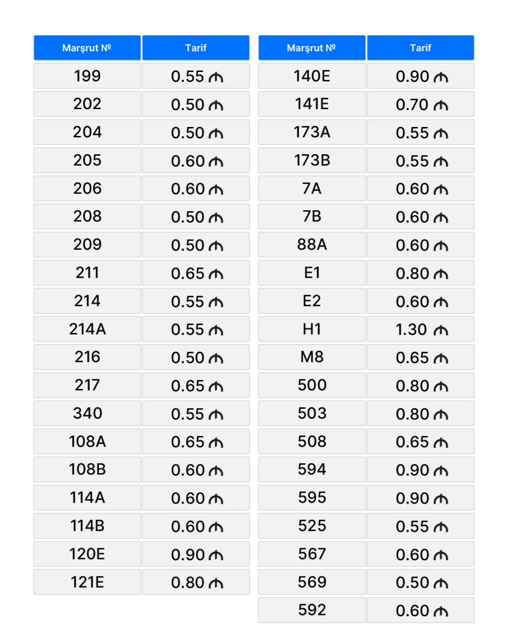 Bakı və paytaxtətrafı marşrut avtobuslarında yenilənmiş nağdsız gedişhaqqı tarifləri müəyyənləşib.