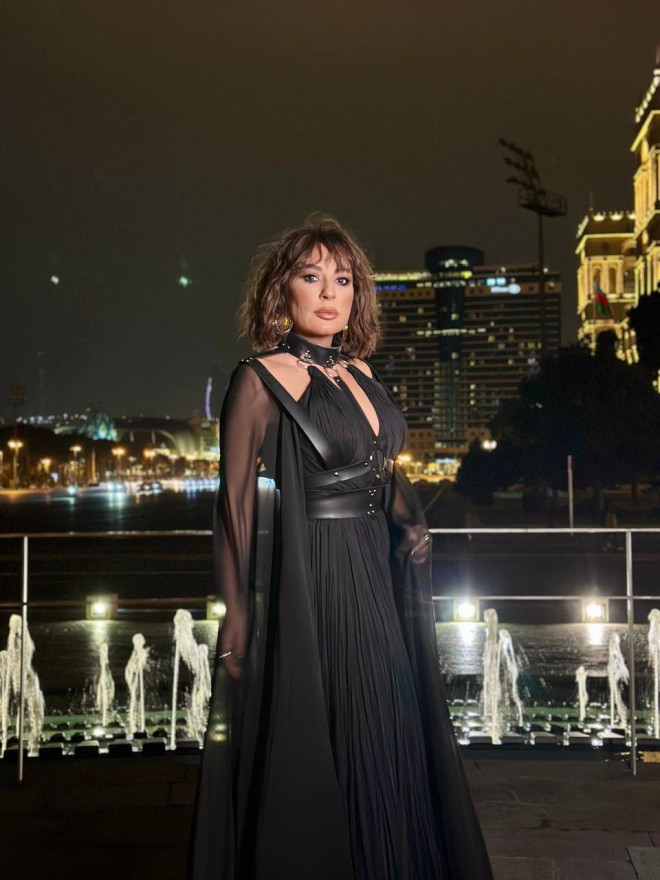 Geyimin müəllifi yerli markamız olan “Dentel Couture” məxsusdur. Xalq artistinin üzərindəki aksesuar isə Neijan Malik imzası daşıyır.